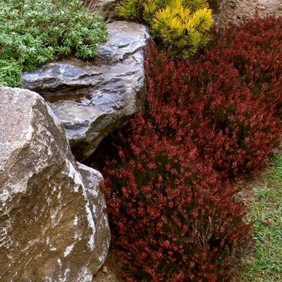 - Nizki brin (Juniperus horizontalis) – počasi rastoč, vedno zelen iglavec, ki lepo prekrije tla in ohrani barvo skozi vse leto.