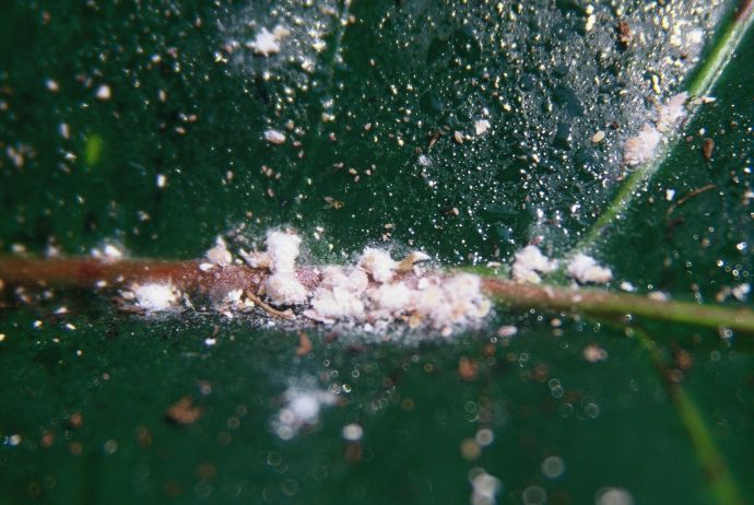 Na listih in cvetovih se lahko pojavijo vatasti beli kosmiči ali kepice, ki so značilen znak prisotnosti vatastih uši. Te škodljivce spremljajo lepljivi madeži zaradi izločanja medene rose.